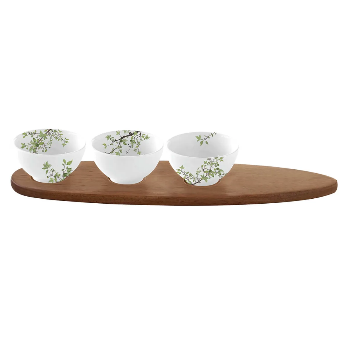 Ensemble apéritif avec 3 bols et plateau en acacia NATURA