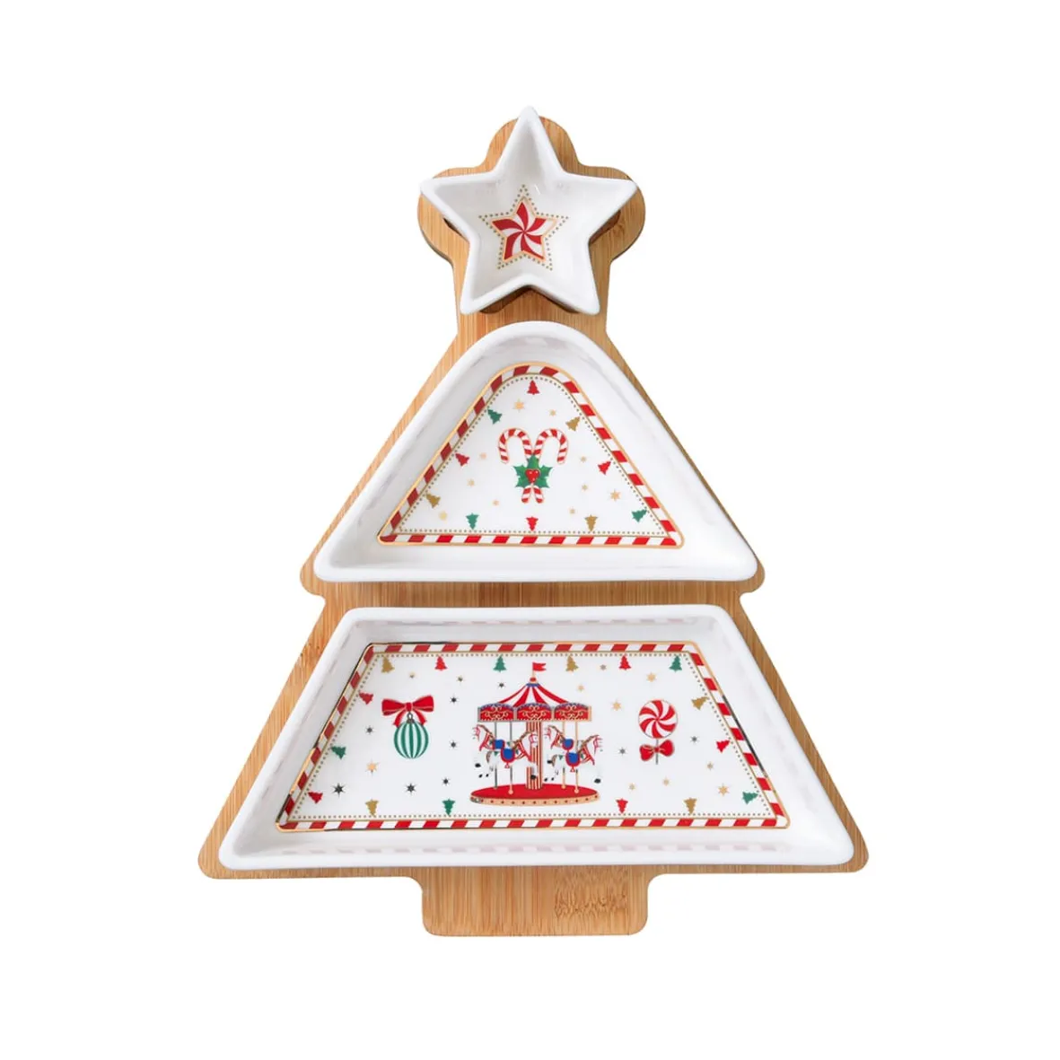 Ensemble apéritif avec 3 bols et plateau en bambou de 21×25 cm CHRISTMAS WONDERLAND