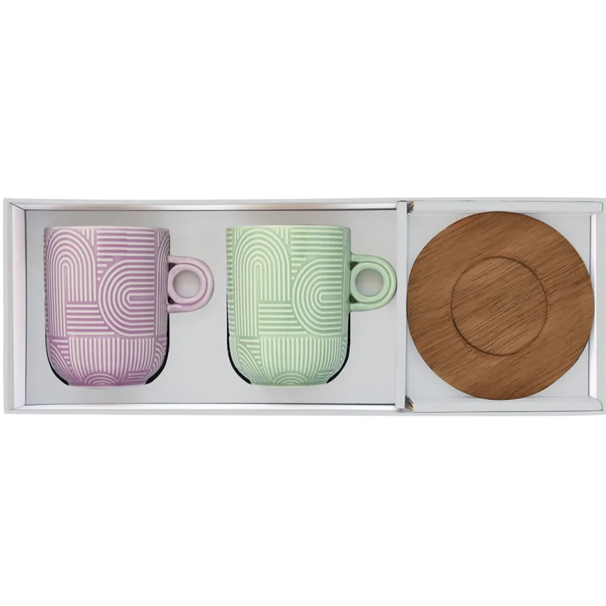 | Matérial | Tasses: Porcelaine – Soucoupe: Acacia |