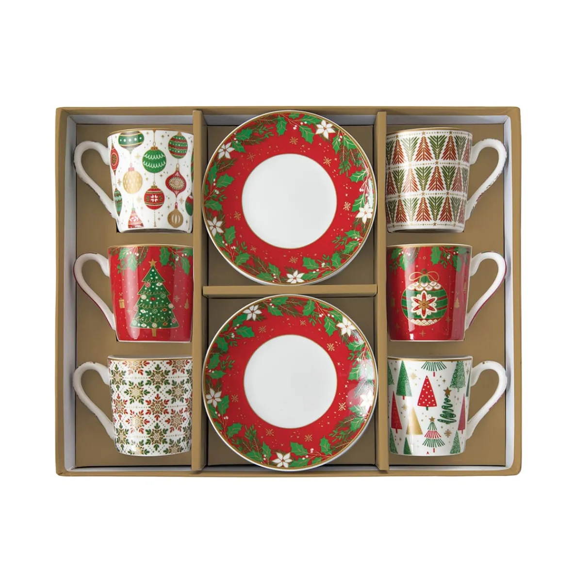 Ensemble de 6 tasses à café avec soucoupe JINGLE BELLS