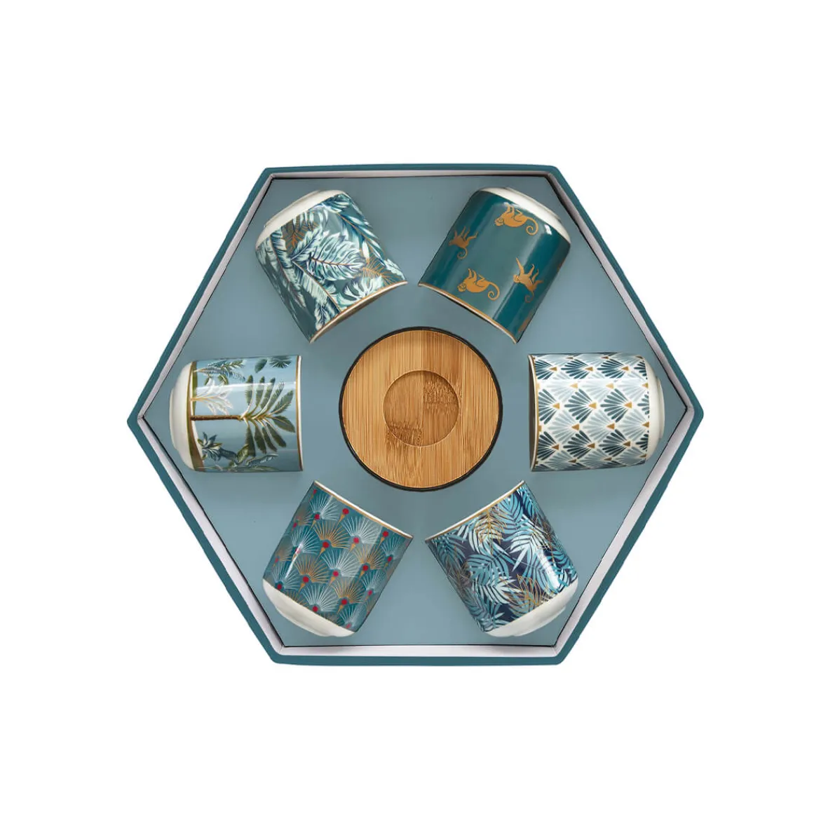 Ensemble de 6 tasses à espresso de 110 ml avec soucoupes en bambou COFFEE Mania JUNGLE