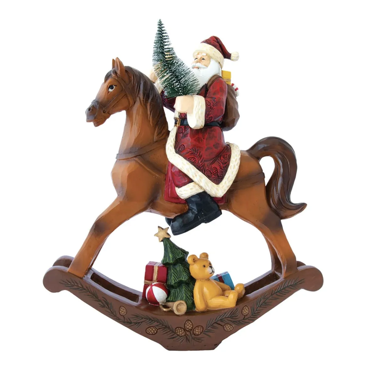 Figurine du père noël sur cheval à bascule en polyrésine CHRISTMAS FIGURINES